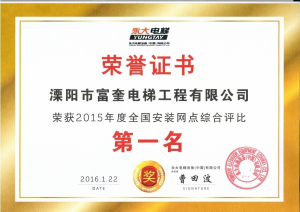 溧陽市富奎電梯工程有限公司 溧陽市富奎電梯工程有限公司是于二OO八年一月九日在原前身溧陽市電梯工程公司基礎(chǔ)上成立的,是專業(yè)從事電梯銷售安裝維修、保養(yǎng)的企業(yè)。是國家質(zhì)監(jiān)總局頒發(fā)的特種設(shè)備安裝、改造、維修A級安裝許可證單位。公司組織機(jī)構(gòu)實行總經(jīng)理負(fù)責(zé)制,公司下設(shè)管理部、銷售部、安裝維修部、質(zhì)安部、財務(wù)部,公司另外設(shè)十二個分公司:四川分公司、江蘇分公司、上海分公司、浙江分公司、湖南分公司、遼寧分公司、山東分...